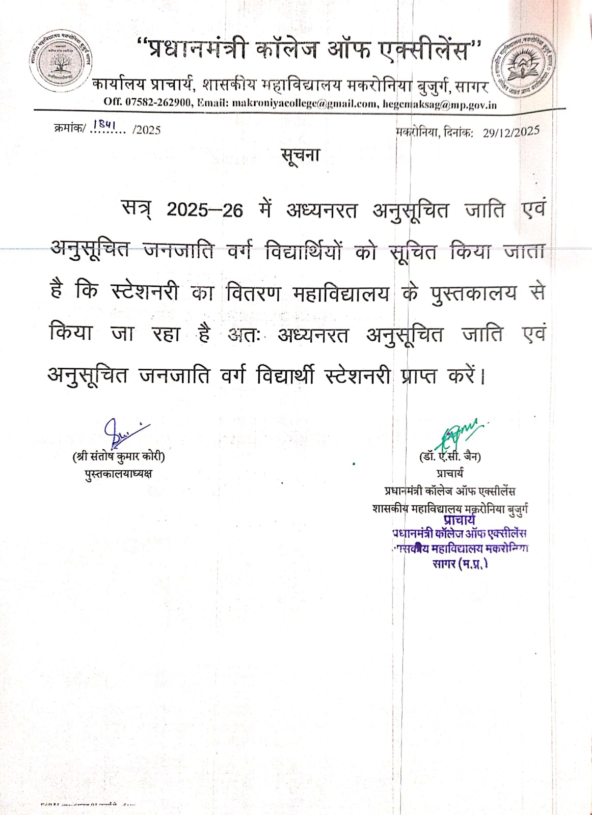 1. To provide maximum opportunities for employment to the students belonging to socially and economically backward communities.